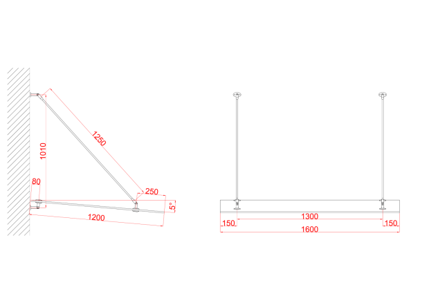 - okucia daszku mocowane do ściany - 2 komplety.