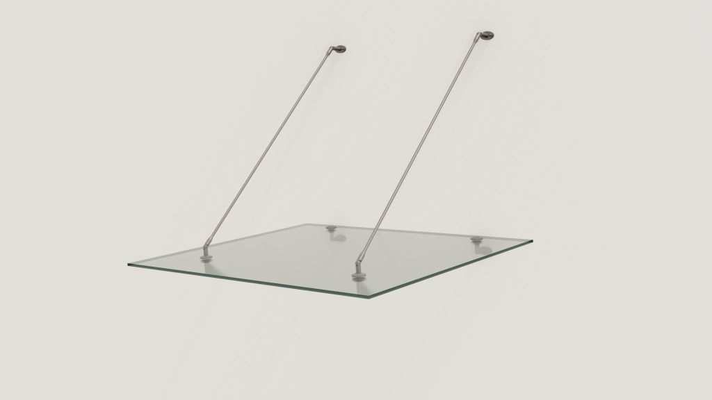 Daszek szklany nad drzwi na odciągach do samodzielnego montażu, zestaw okuć i szkła bezpiecznego 66.2 (12,76 mm)