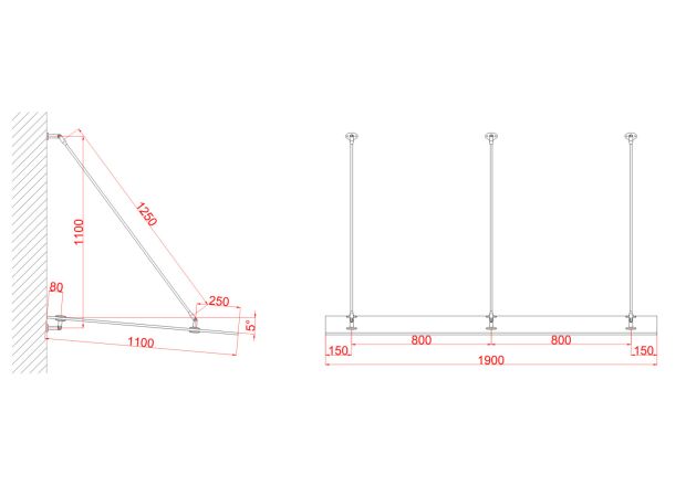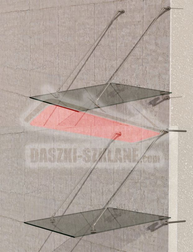 Daszek szklany nad drzwi na odciągach do samodzielnego montażu, zestaw okuć i szkła bezpiecznego 66.2 (12,76 mm)