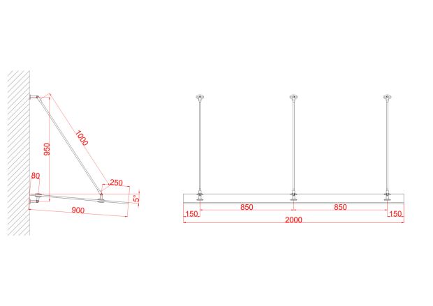 - okucia daszku mocowane do ściany - 3 komplety.