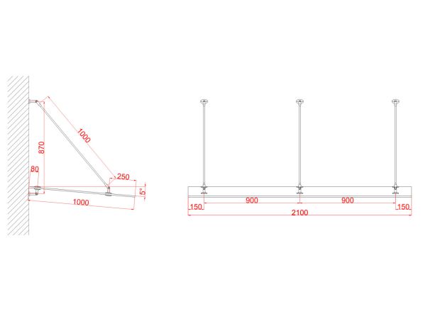 W skład zestawu wchodzą okucia daszku mocowane do ściany - 3 komplety oraz szkło bezbarwne laminowane VSG i hartowane ESG o grubości 12,76 mm oraz wymiarach 210x100 cm - 1 sztuka. Warto zaznaczyć, że akcesoria montażowe nie są dołączone do zestawu, jednak są one łatwo dostępne w naszej ofercie jako produkty powiązane.