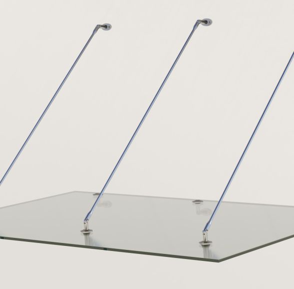 Daszek szklany nad drzwi na odciągach do samodzielnego montażu, zestaw okuć i szkła bezpiecznego 66.2 (12,76 mm)