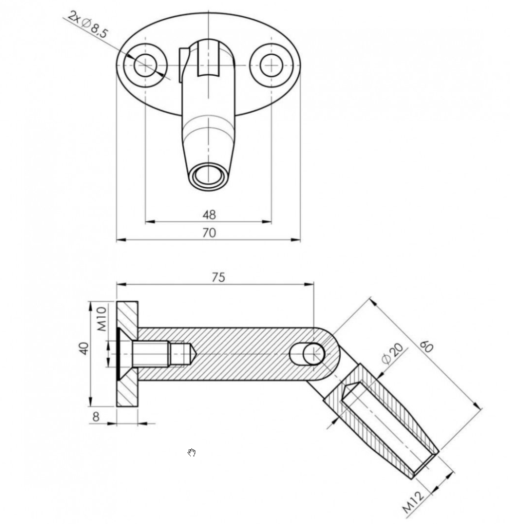 Solidny element konstrukcyjny w kolorze czarnym RAL 9005, przeznaczony do stabilnego mocowania daszka szklanego lub wiaty do ściany. Konstrukcja jest regulowana, co umożliwia precyzyjną regulację nachylenia wypełnienia, dopasowując je do wymagań projektu i warunków montażu. Wykonane z wysokiej jakości stali nierdzewnej malowanej proszkowo, mocowanie wyróżnia się trwałością oraz nowoczesnym, matowym wykończeniem, które doskonale komponuje się z architekturą współczesnych obiektów.