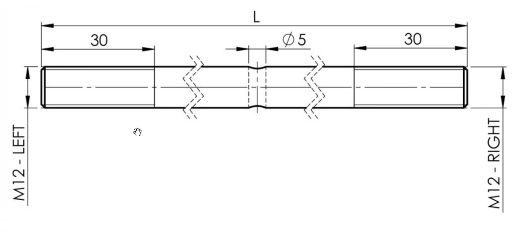 - Długość gwintowanych końców: 30 mm (z każdej strony)