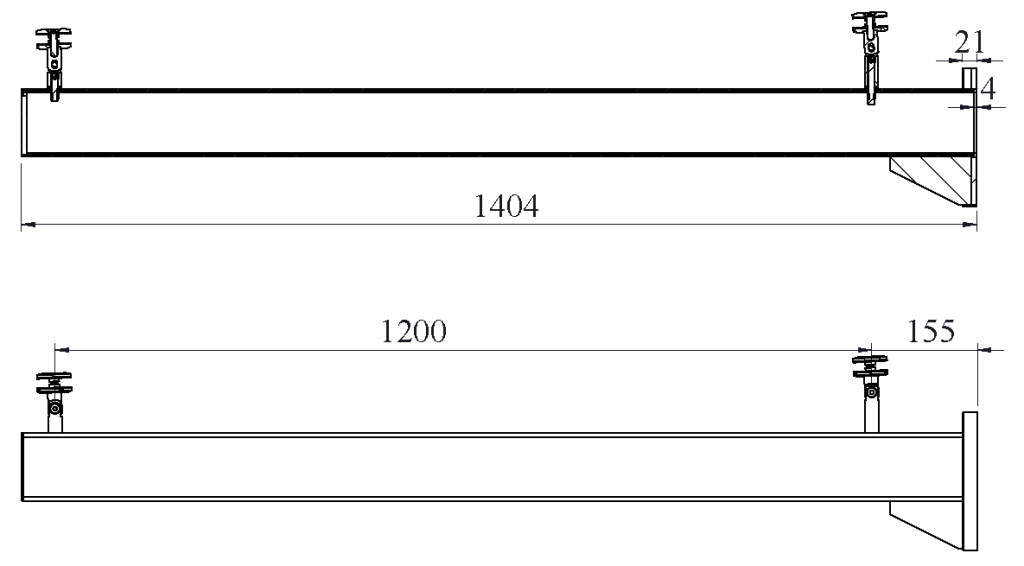 Wspornik do daszków szklanych wykonany z profilu 100x40 mm o długości 1404 mm w eleganckim wykończeniu stal szlifowana to wytrzymały element konstrukcyjny przeznaczony do montażu tafli szklanych o dużym wysięgu. Solidny profil i precyzyjne wykonanie zapewniają stabilne podparcie szkła o wysięgu 1,5 metra. Montaż do ściany realizowany jest poprzez kryzę montażową z czterema otworami, co gwarantuje pewność i trwałość całej konstrukcji. Wspornik wyposażony jest w uchwyty zaciskowe fi 50 mm do szkła, umożliwiające szybki i bezpieczny montaż (konieczne przygotowanie otworów w tafli szkła).